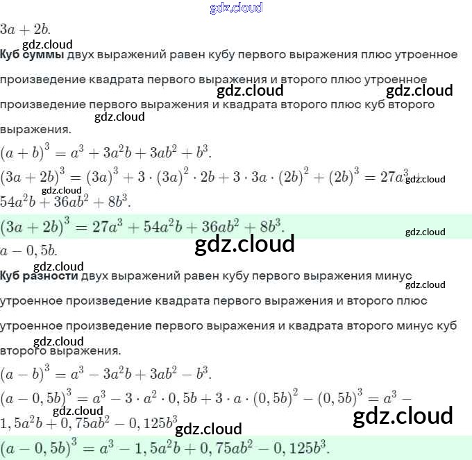 Ответы. §28. Возведение в квадрат и в куб суммы и разности двух выражений по Алгебре 7 класс Рабочая тетрадь Миндюк УМК Часть 1, 2 Просвещение