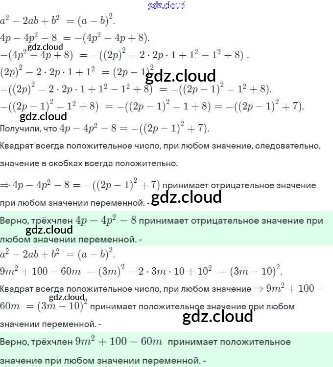 Ответы. §29. Разложение на множители с помощью формул квадрата суммы и квадрата разности  по Алгебре 7 класс Рабочая тетрадь Миндюк УМК  Часть 1, 2 Просвещение