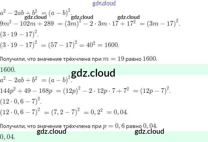 Ответы. §29. Разложение на множители с помощью формул квадрата суммы и квадрата разности  по Алгебре 7 класс Рабочая тетрадь Миндюк УМК  Часть 1, 2 Просвещение