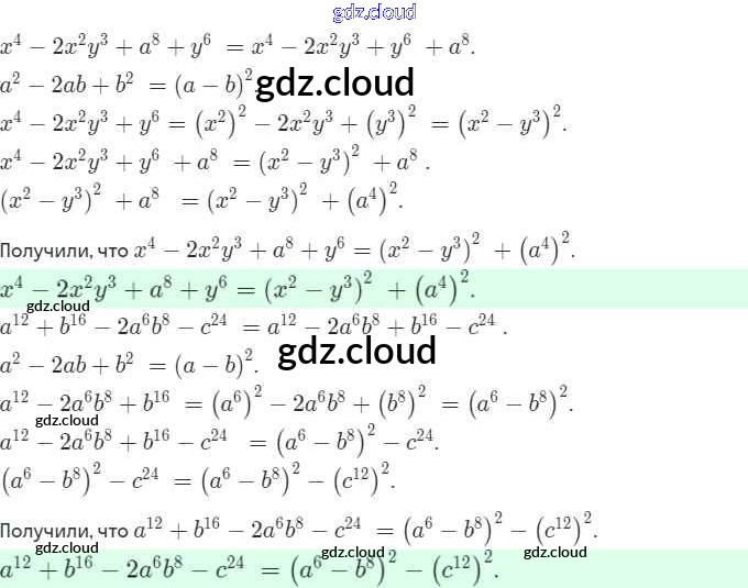 Ответы. §29. Разложение на множители с помощью формул квадрата суммы и квадрата разности  по Алгебре 7 класс Рабочая тетрадь Миндюк УМК  Часть 1, 2 Просвещение