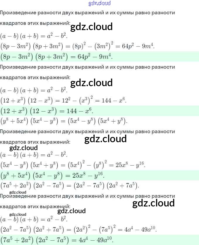 Ответы. §30. Умножение разности двух выражений на их сумму  по Алгебре 7 класс Рабочая тетрадь Миндюк УМК  Часть 1, 2 Просвещение