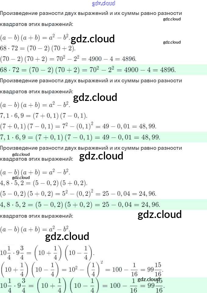 Ответы. §30. Умножение разности двух выражений на их сумму  по Алгебре 7 класс Рабочая тетрадь Миндюк УМК  Часть 1, 2 Просвещение