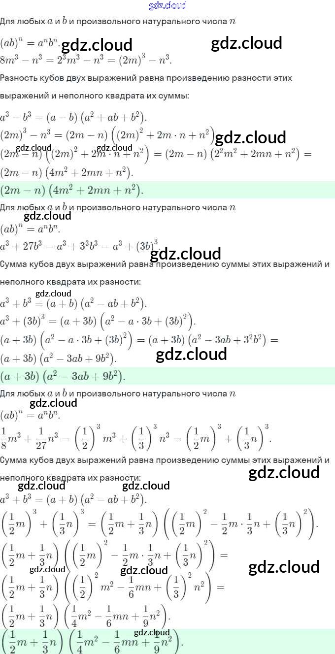 Ответы. §32. Разложение на множители суммы и разности кубов по Алгебре 7 класс Рабочая тетрадь Миндюк УМК Часть 1, 2 Просвещение
