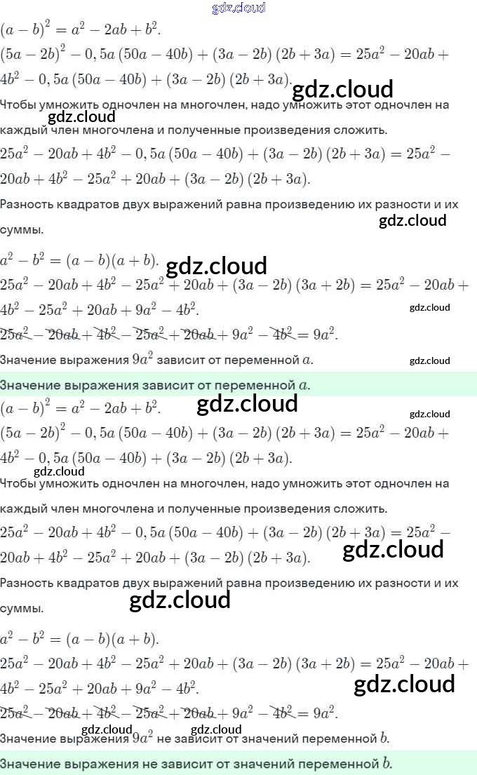 Ответы. §33. Преобразование целого выражения в многочлен  по Алгебре 7 класс Рабочая тетрадь Миндюк УМК  Часть 1, 2 Просвещение