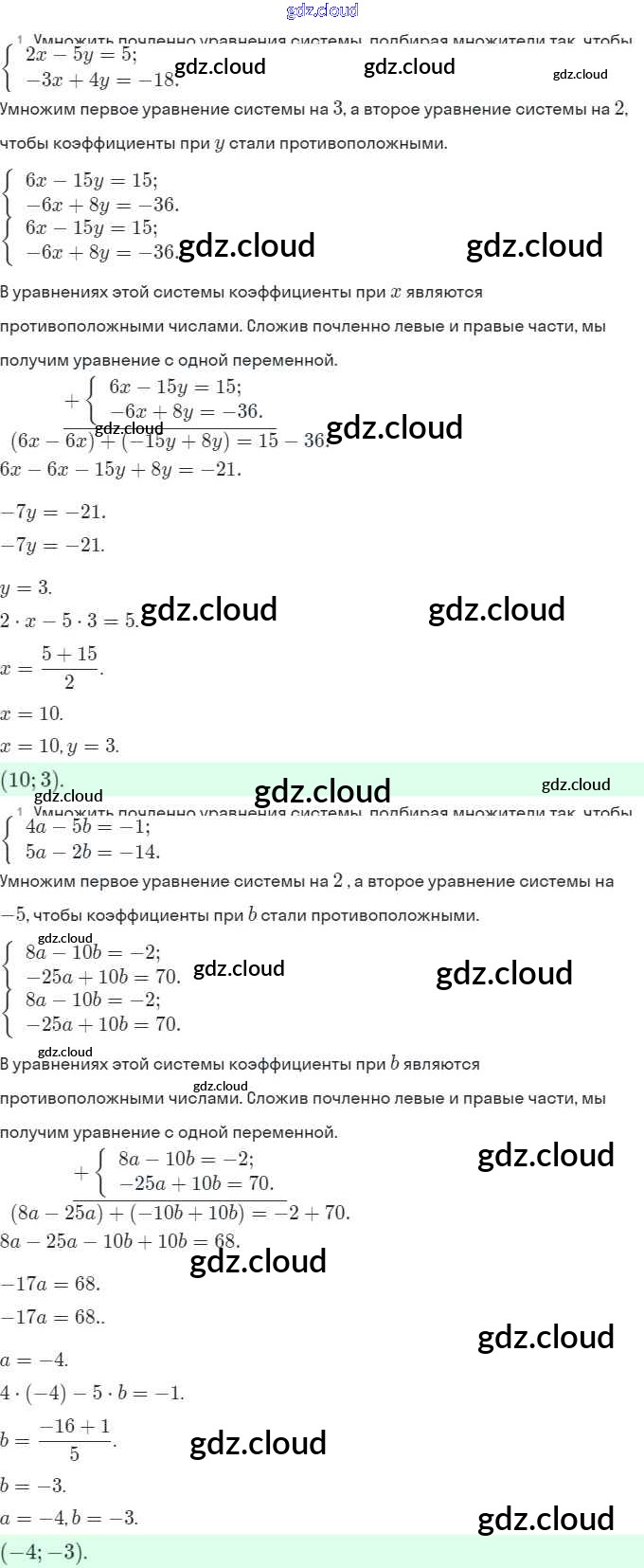 Ответы. §39. Способ сложения  по Алгебре 7 класс Рабочая тетрадь Миндюк УМК  Часть 1, 2 Просвещение