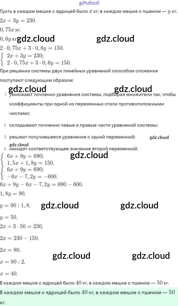 Ответы. §40. Решение задач с помощью систем уравнений  по Алгебре 7 класс Рабочая тетрадь Миндюк УМК  Часть 1, 2 Просвещение