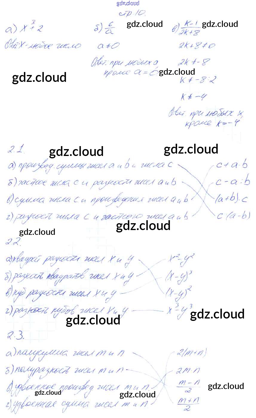 Ответ на задание стр.10 Рабочая тетрадь Алгебра за 7 (седьмой) класс Зубарева, Мильштейн 2019 Часть 1, 2 ФГОС онлайн и без номера телефона.