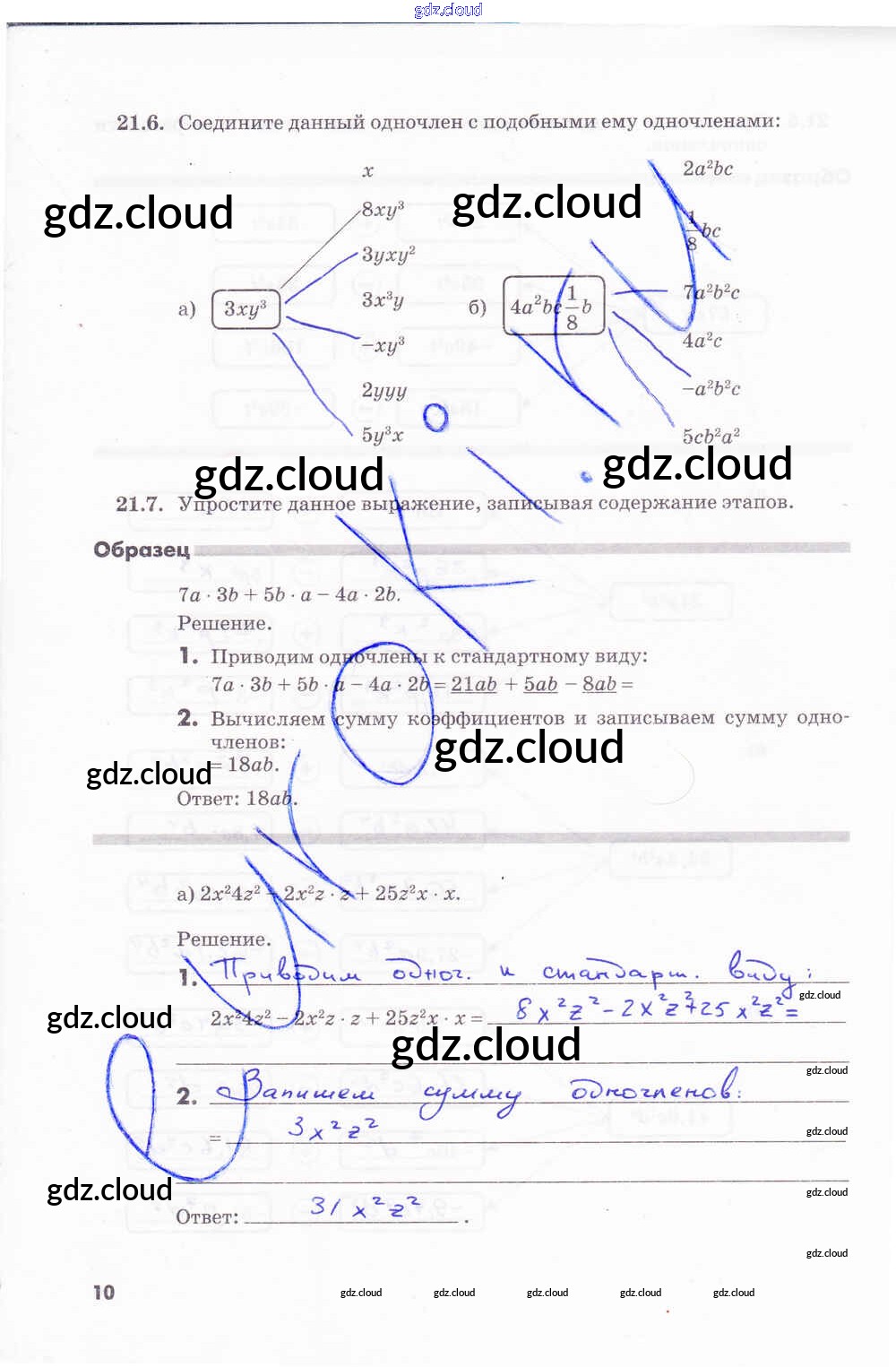Ответ на задание стр.10 Рабочая тетрадь Алгебра за 7 (седьмой) класс Зубарева, Мильштейн 2019 Часть 1, 2 ФГОС онлайн и без номера телефона.