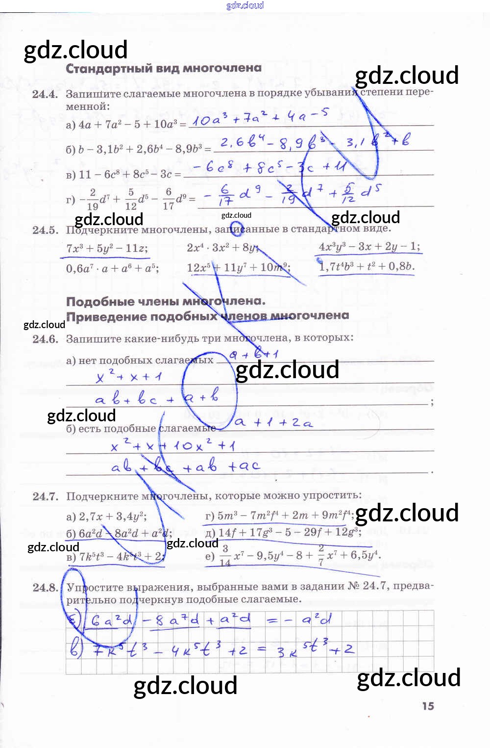 Ответ на задание стр.15 Рабочая тетрадь Алгебра за 7 (седьмой) класс Зубарева, Мильштейн 2019 Часть 1, 2 ФГОС онлайн и без номера телефона.