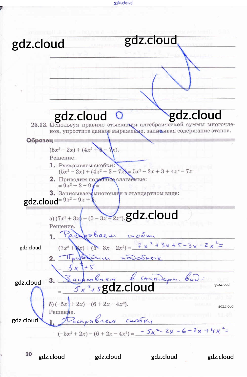 Ответ на задание стр.20 Рабочая тетрадь Алгебра за 7 (седьмой) класс Зубарева, Мильштейн 2019 Часть 1, 2 ФГОС онлайн и без номера телефона.