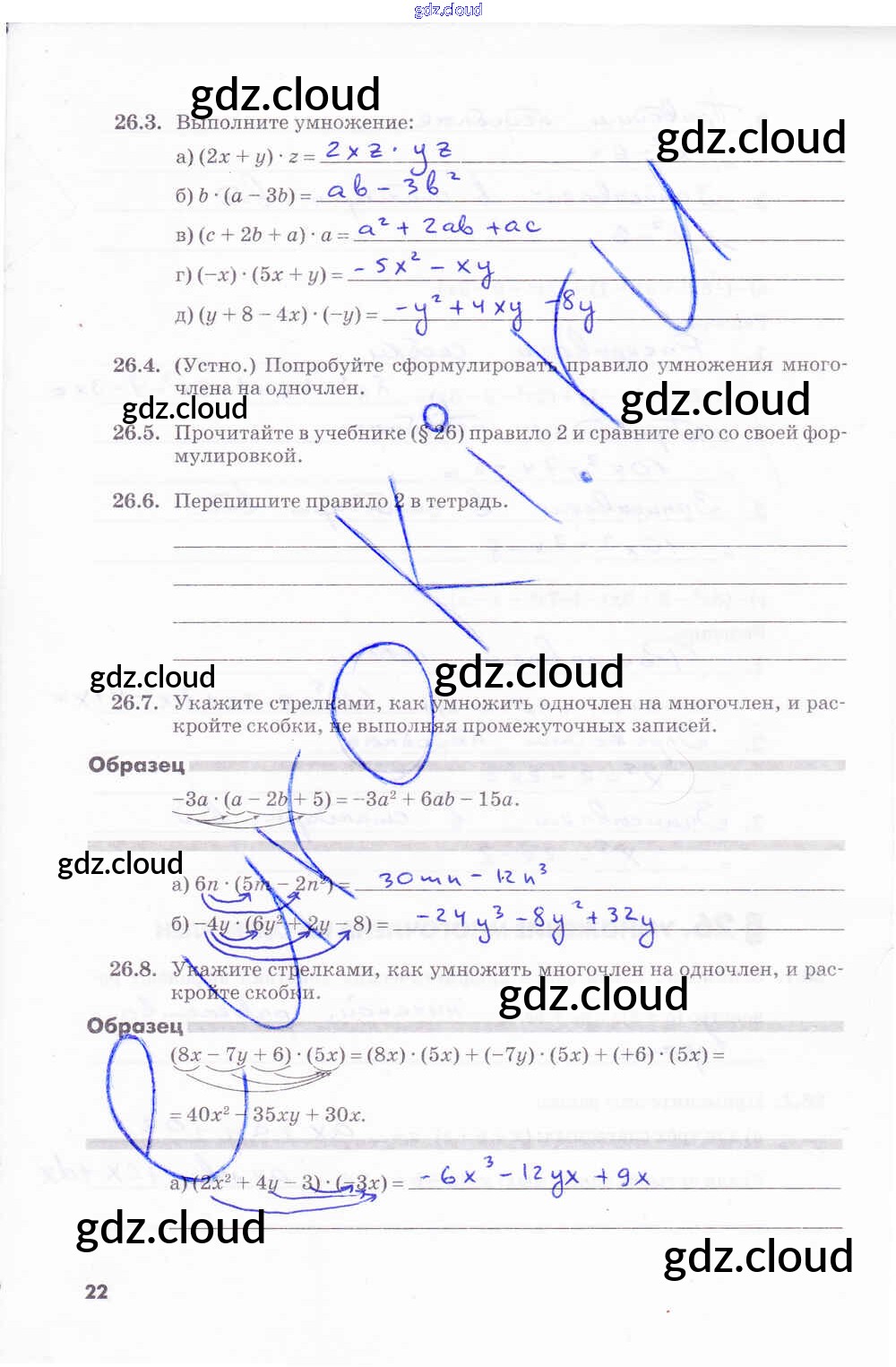 Ответ на задание стр.22 Рабочая тетрадь Алгебра за 7 (седьмой) класс Зубарева, Мильштейн 2019 Часть 1, 2 ФГОС онлайн и без номера телефона.