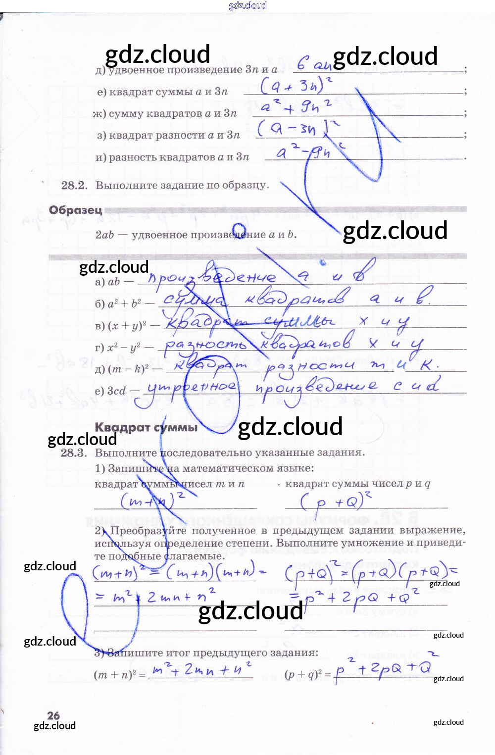 Ответ на задание стр.26 Рабочая тетрадь Алгебра за 7 (седьмой) класс Зубарева, Мильштейн 2019 Часть 1, 2 ФГОС онлайн и без номера телефона.