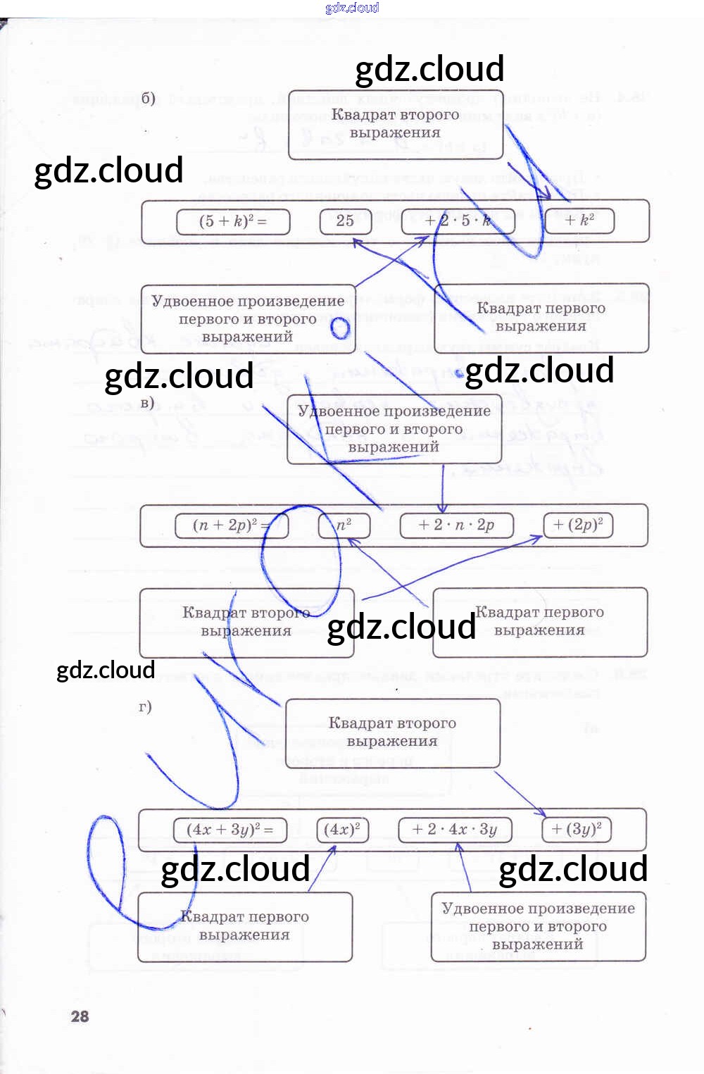 Ответ на задание стр.28 Рабочая тетрадь Алгебра за 7 (седьмой) класс Зубарева, Мильштейн 2019 Часть 1, 2 ФГОС онлайн и без номера телефона.