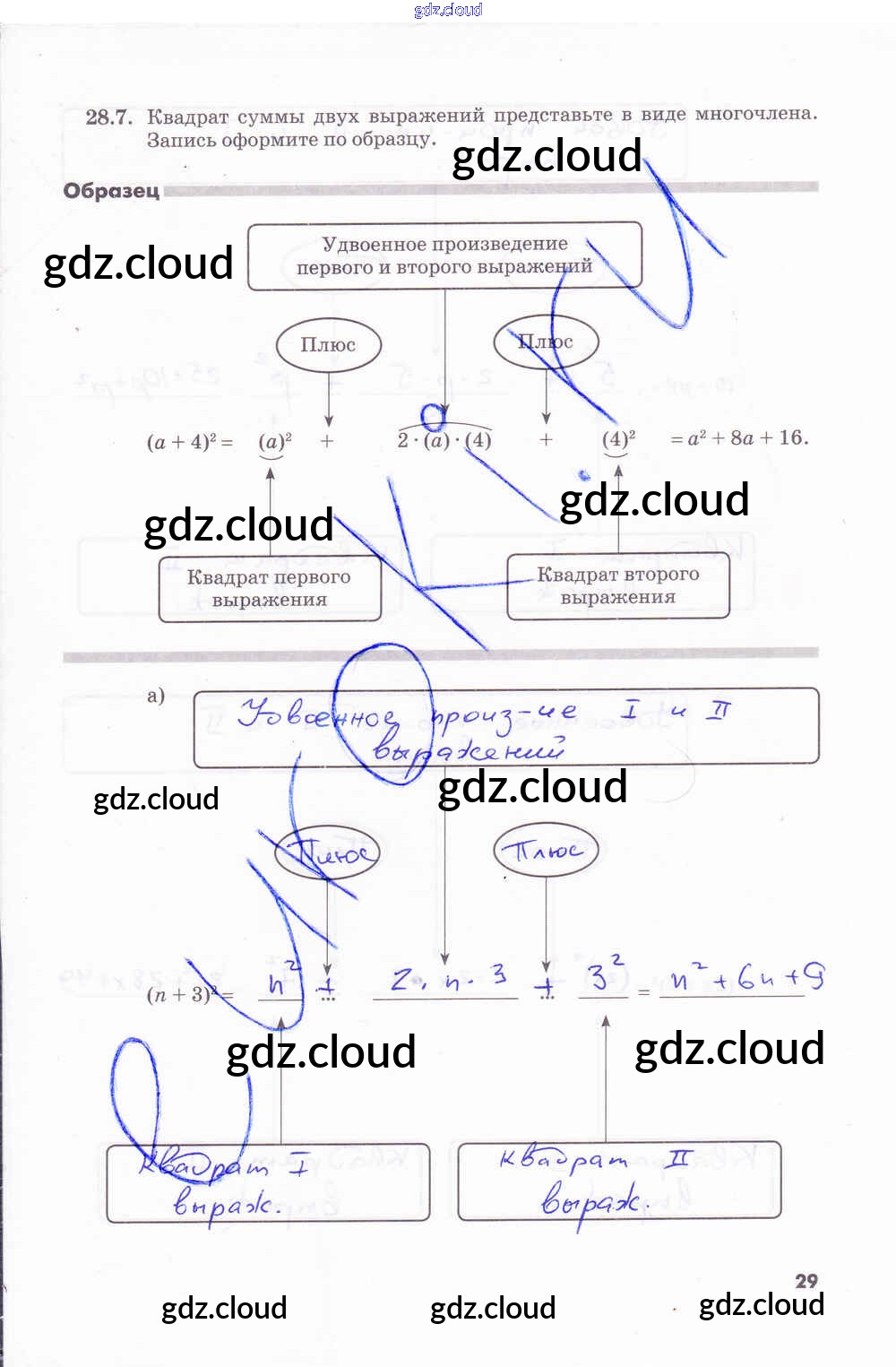 Ответ на задание стр.29 Рабочая тетрадь Алгебра за 7 (седьмой) класс Зубарева, Мильштейн 2019 Часть 1, 2 ФГОС онлайн и без номера телефона.