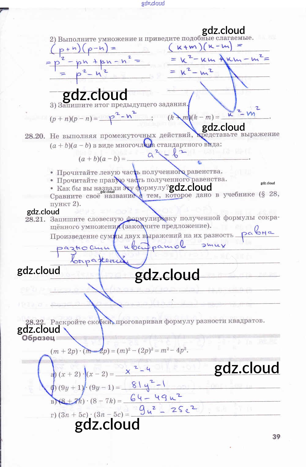 Ответ на задание стр.39 Рабочая тетрадь Алгебра за 7 (седьмой) класс Зубарева, Мильштейн 2019 Часть 1, 2 ФГОС онлайн и без номера телефона.