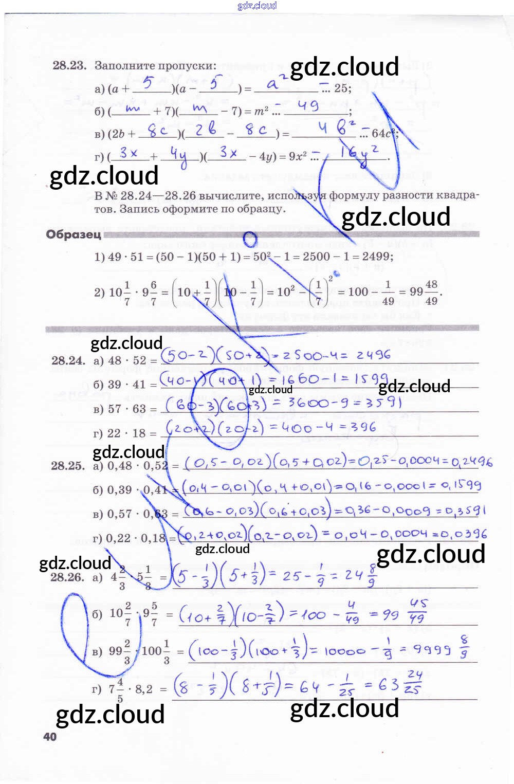 Ответ на задание стр.40 Рабочая тетрадь Алгебра за 7 (седьмой) класс Зубарева, Мильштейн 2019 Часть 1, 2 ФГОС онлайн и без номера телефона.