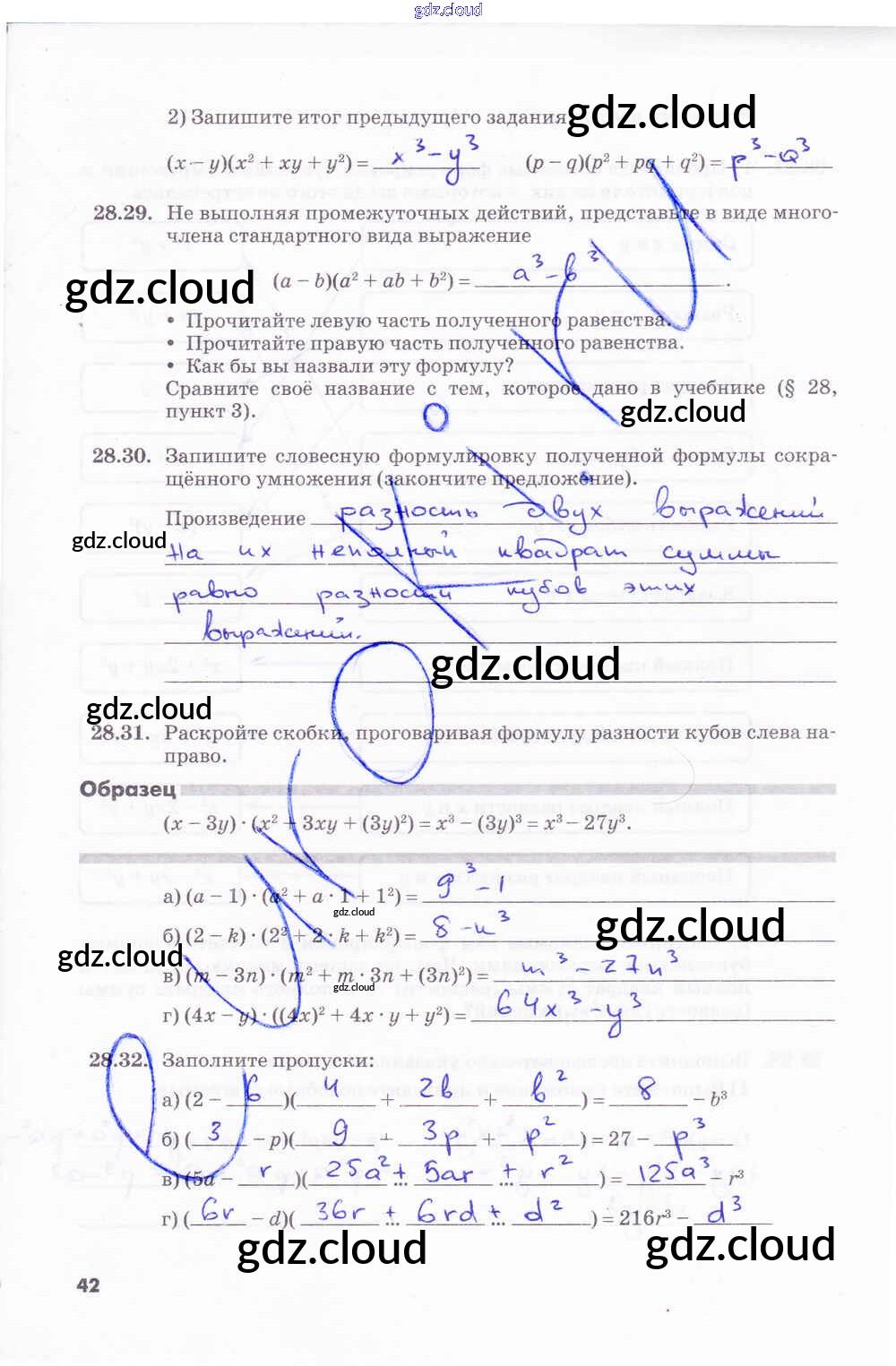 Ответ на задание стр.42 Рабочая тетрадь Алгебра за 7 (седьмой) класс Зубарева, Мильштейн 2019 Часть 1, 2 ФГОС онлайн и без номера телефона.