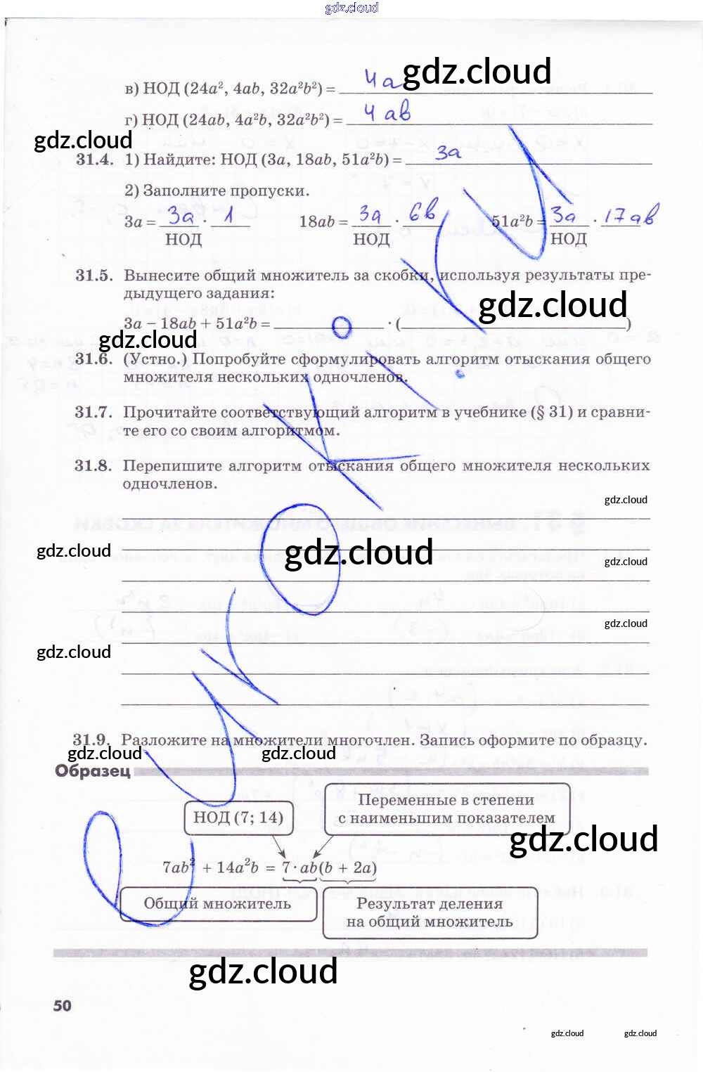Ответ на задание стр.50 Рабочая тетрадь Алгебра за 7 (седьмой) класс Зубарева, Мильштейн 2019 Часть 1, 2 ФГОС онлайн и без номера телефона.