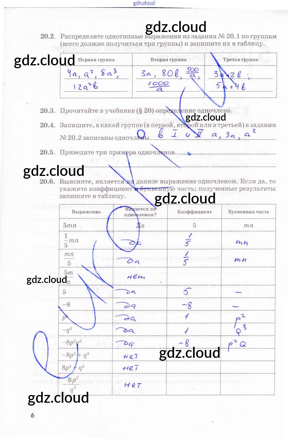 Ответ на задание стр.6 Рабочая тетрадь Алгебра за 7 (седьмой) класс Зубарева, Мильштейн 2019 Часть 1, 2 ФГОС онлайн и без номера телефона.