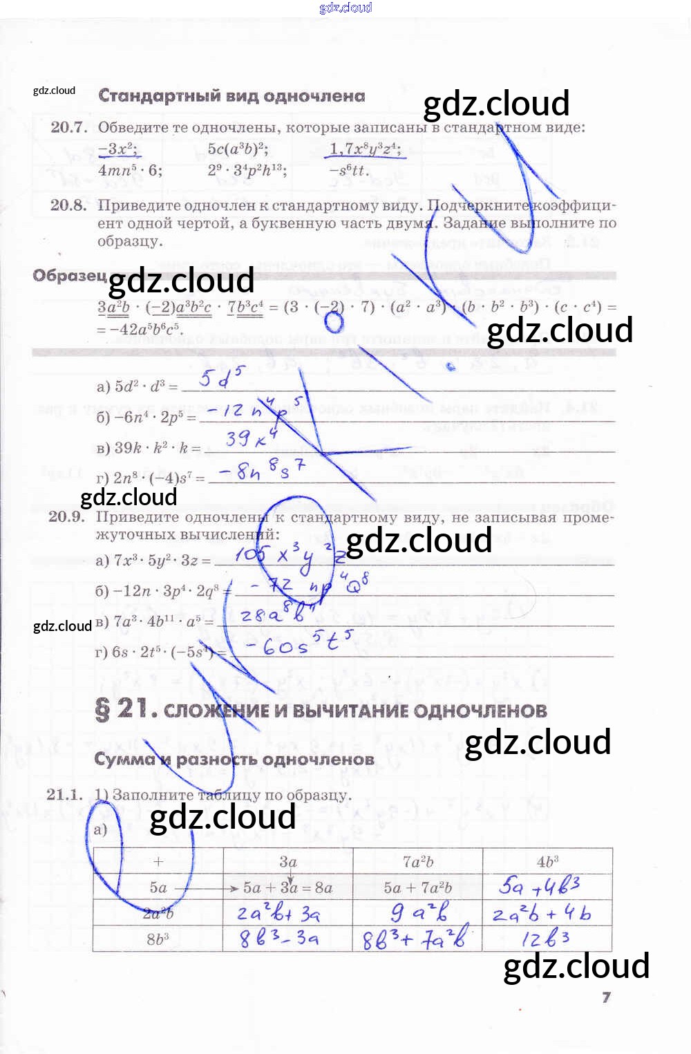 Ответ на задание стр.7 Рабочая тетрадь Алгебра за 7 (седьмой) класс Зубарева, Мильштейн 2019 Часть 1, 2 ФГОС онлайн и без номера телефона.
