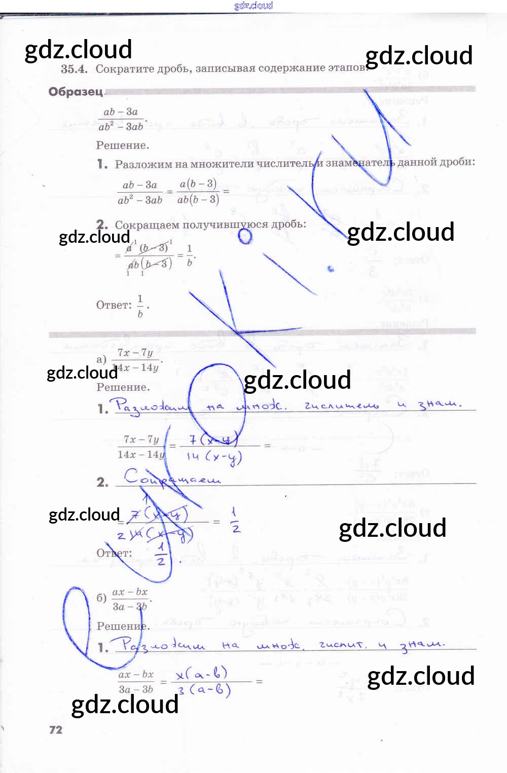 Ответ на задание стр.72 Рабочая тетрадь Алгебра за 7 (седьмой) класс Зубарева, Мильштейн 2019 Часть 1, 2 ФГОС онлайн и без номера телефона.