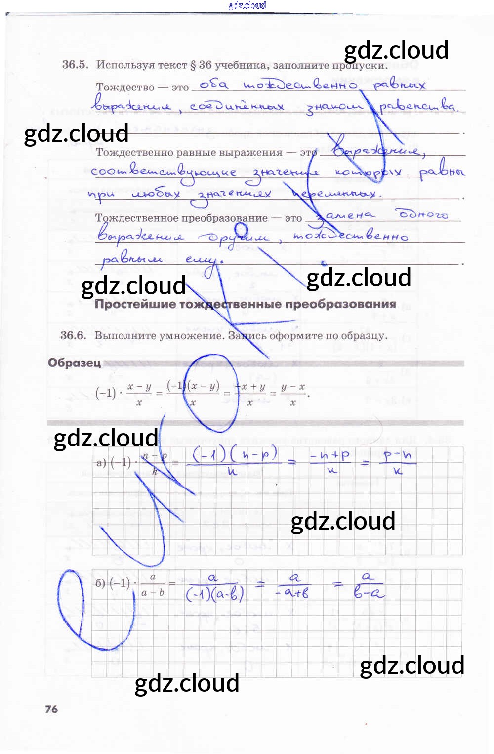Ответ на задание стр.76 Рабочая тетрадь Алгебра за 7 (седьмой) класс Зубарева, Мильштейн 2019 Часть 1, 2 ФГОС онлайн и без номера телефона.
