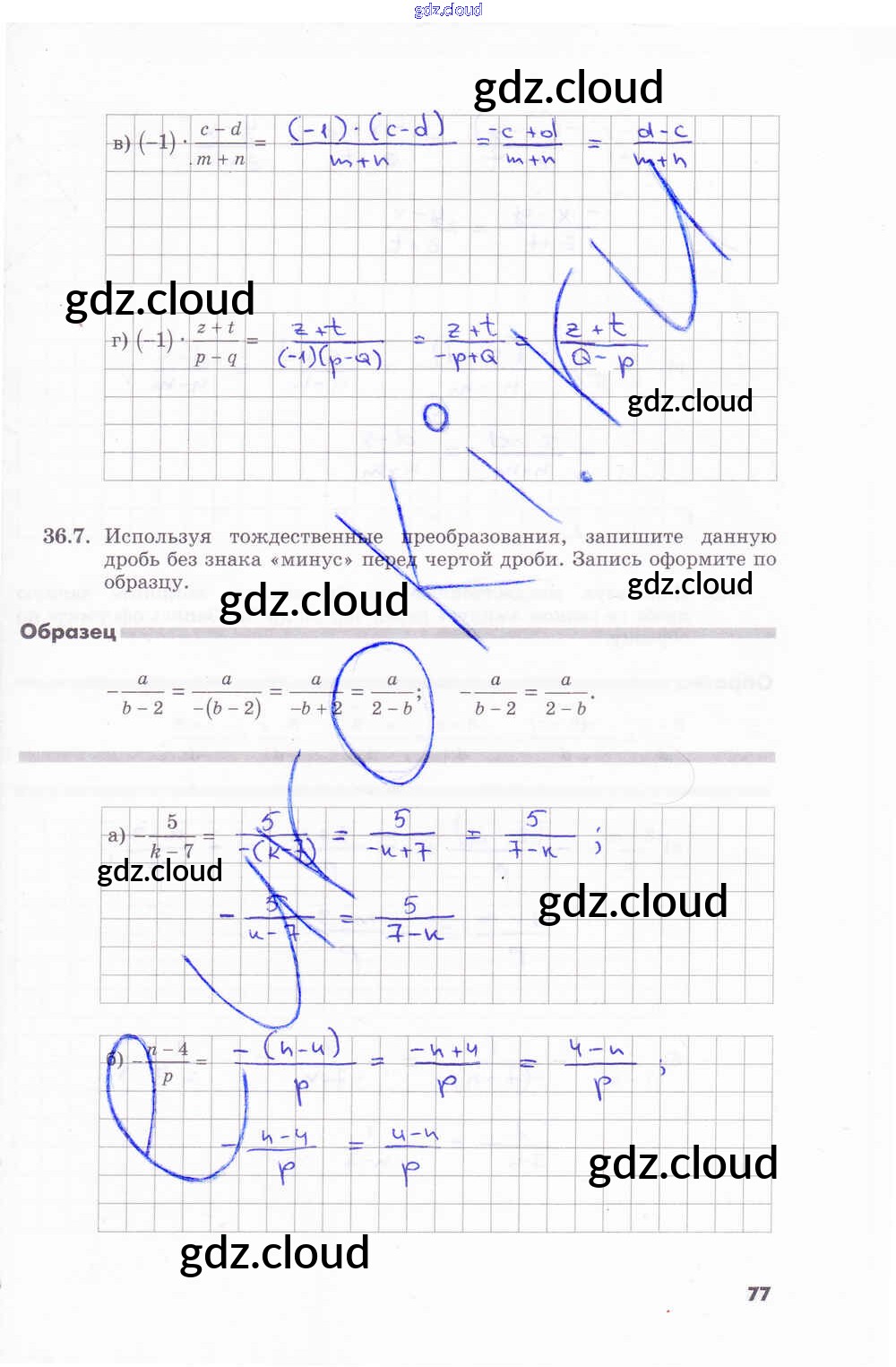 Ответ на задание стр.77 Рабочая тетрадь Алгебра за 7 (седьмой) класс Зубарева, Мильштейн 2019 Часть 1, 2 ФГОС онлайн и без номера телефона.