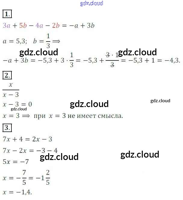 Ответ на задание 1 Самостоятельные работы Алгебра  за 7 (седьмой) класс Александрова УМК  2016