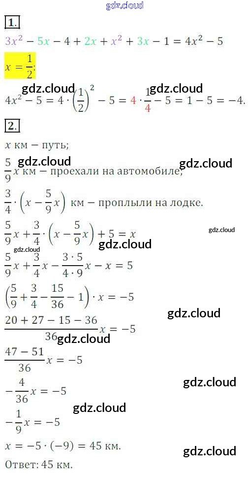 Ответ на задание 1 Самостоятельные работы Алгебра  за 7 (седьмой) класс Александрова УМК  2016