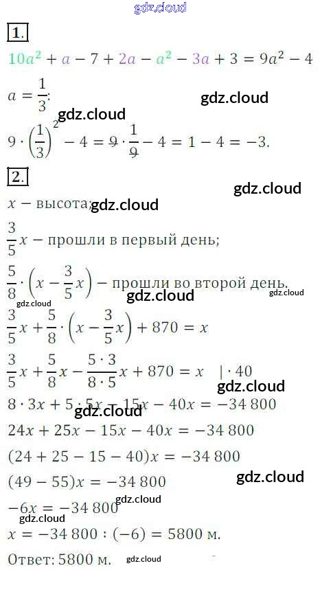 Ответ на задание 2 Самостоятельные работы Алгебра  за 7 (седьмой) класс Александрова УМК  2016