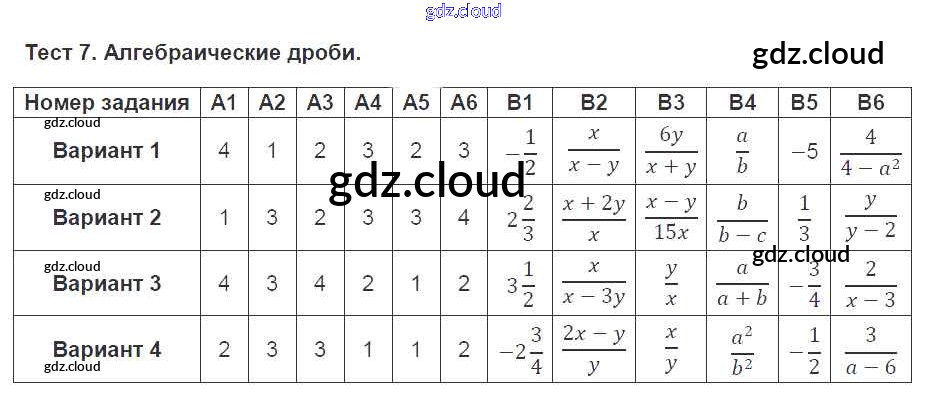 Ответы к Тестам по Алгебре 7 класс Тематические тесты Чулков МГУ - школе Просвещение