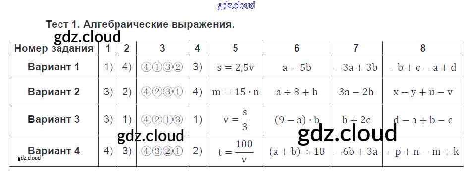 Ответ на задание 1 Тематические тесты Алгебра за 7 (седьмой) класс Ткачева 2018 ФГОС онлайн и без номера телефона.