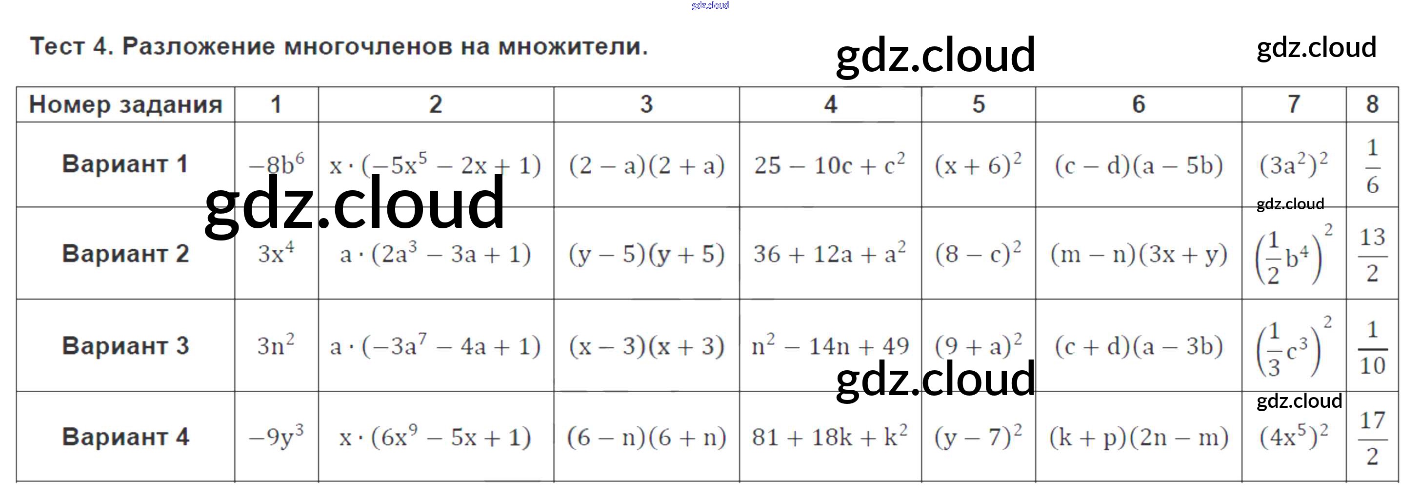Ответ на задание 4 Тематические тесты Алгебра за 7 (седьмой) класс Ткачева 2018 ФГОС онлайн и без номера телефона.