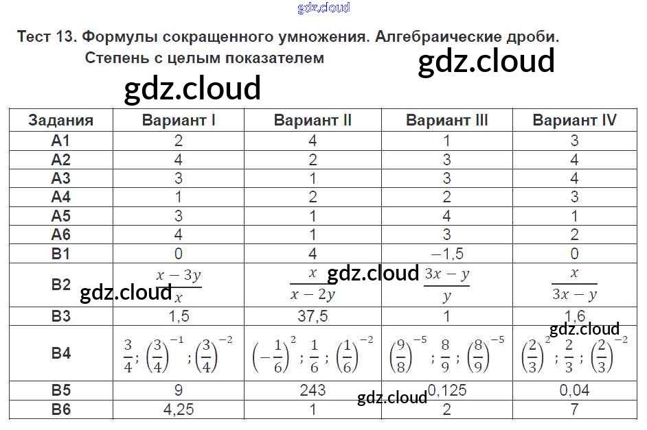 Ответ на задание 13 Тесты Алгебра за 7 (седьмой) класс Журавлев, Ермаков, Перепелкина, Свентковский УМК 2013 ФГОС онлайн и без номера телефона.