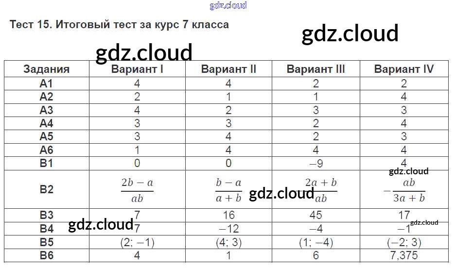 Ответ на задание 15 Тесты Алгебра за 7 (седьмой) класс Журавлев, Ермаков, Перепелкина, Свентковский УМК 2013 ФГОС онлайн и без номера телефона.