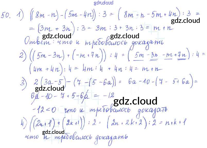 Ответ на задание 50 Учебник Алгебра за 7 (седьмой) класс Алимов, Колягин, Сидоров, Ткачева, Федорова, Шабунин 2014