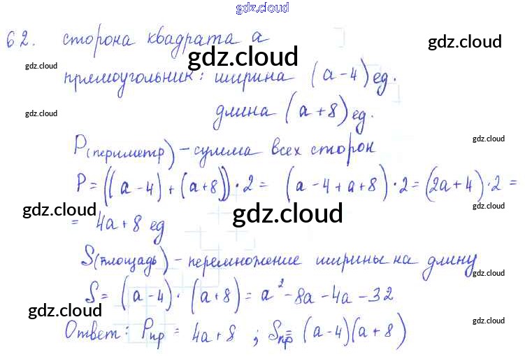 Ответ на задание 62 Учебник Алгебра  за 7 (седьмой) класс Алимов, Колягин, Сидоров, Ткачева, Федорова, Шабунин   2014