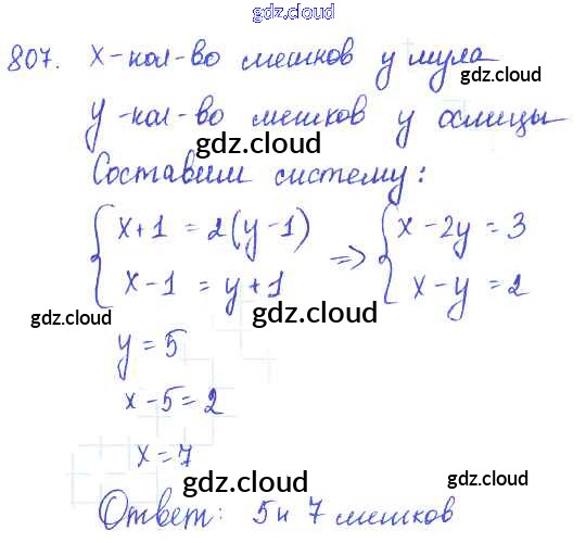 Ответ на задание 807 Учебник Алгебра  за 7 (седьмой) класс Алимов, Колягин, Сидоров, Ткачева, Федорова, Шабунин   2014