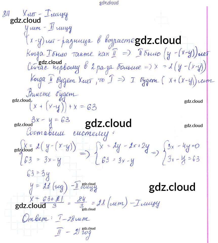 Ответ на задание 811 Учебник Алгебра  за 7 (седьмой) класс Алимов, Колягин, Сидоров, Ткачева, Федорова, Шабунин   2014