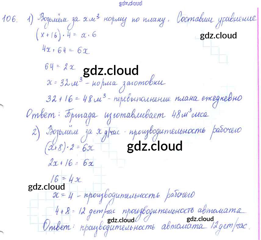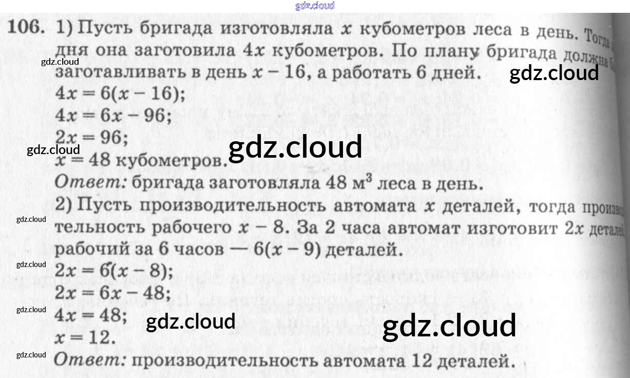 Ответ на задание 106 Учебник Алгебра  за 7 (седьмой) класс Алимов, Колягин, Сидоров, Ткачева, Федорова, Шабунин   2014