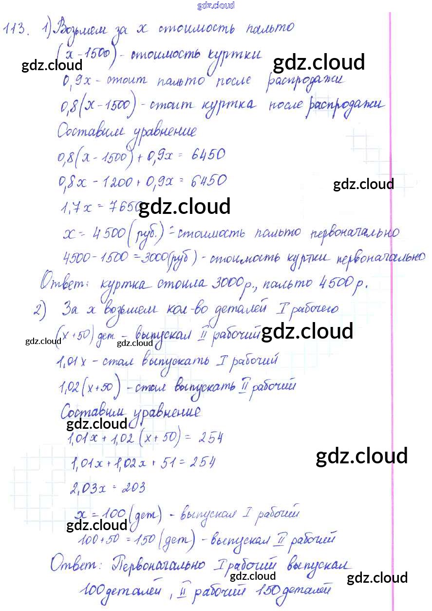 Ответ на задание 113 Учебник Алгебра  за 7 (седьмой) класс Алимов, Колягин, Сидоров, Ткачева, Федорова, Шабунин   2014