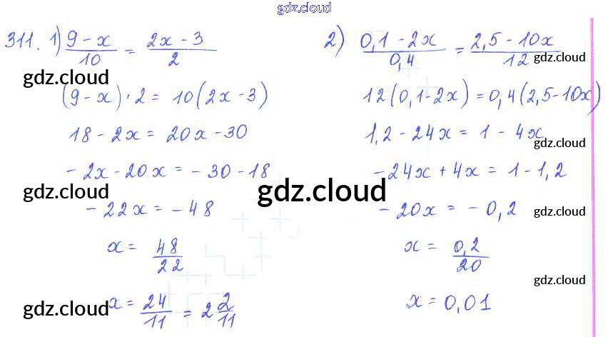 Ответ на задание 311 Учебник Алгебра за 7 (седьмой) класс Алимов, Колягин, Сидоров, Ткачева, Федорова, Шабунин 2014