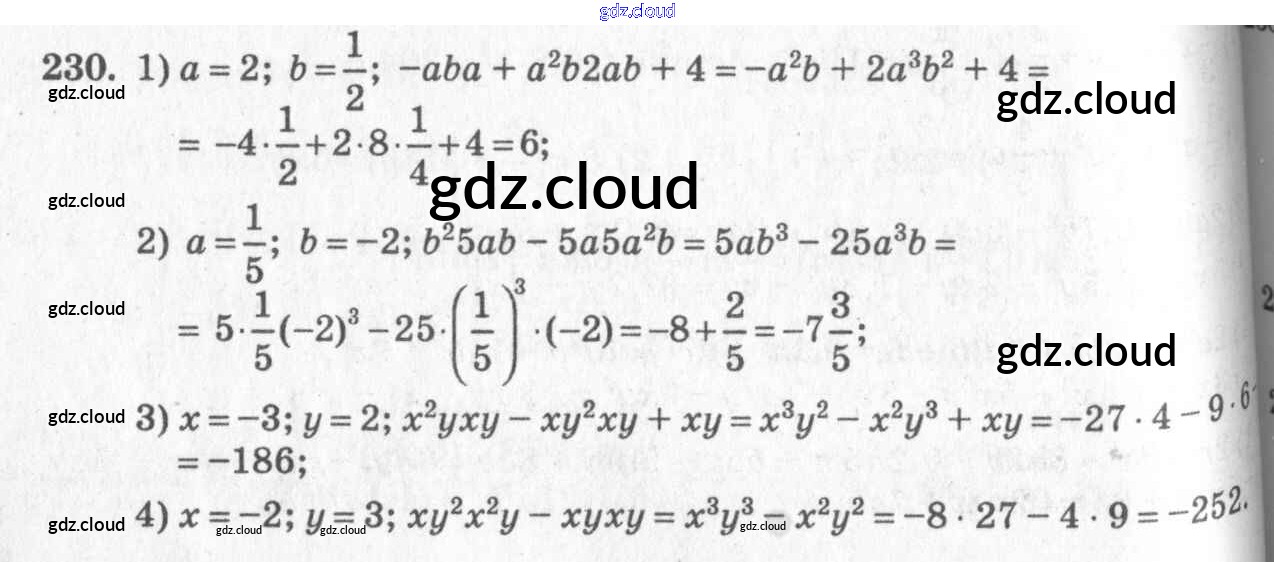 Ответ на задание 230 Учебник Алгебра за 7 (седьмой) класс Алимов, Колягин, Сидоров, Ткачева, Федорова, Шабунин 2014