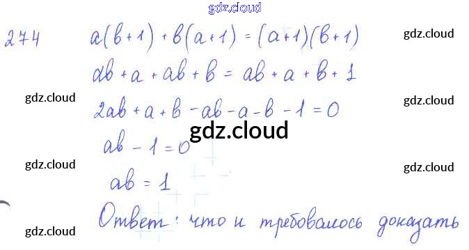 Ответ на задание 274 Учебник Алгебра  за 7 (седьмой) класс Алимов, Колягин, Сидоров, Ткачева, Федорова, Шабунин   2014
