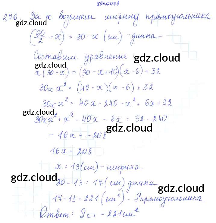 Ответ на задание 276 Учебник Алгебра за 7 (седьмой) класс Алимов, Колягин, Сидоров, Ткачева, Федорова, Шабунин 2014