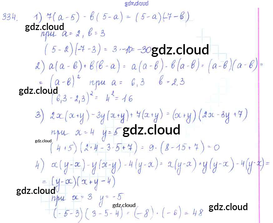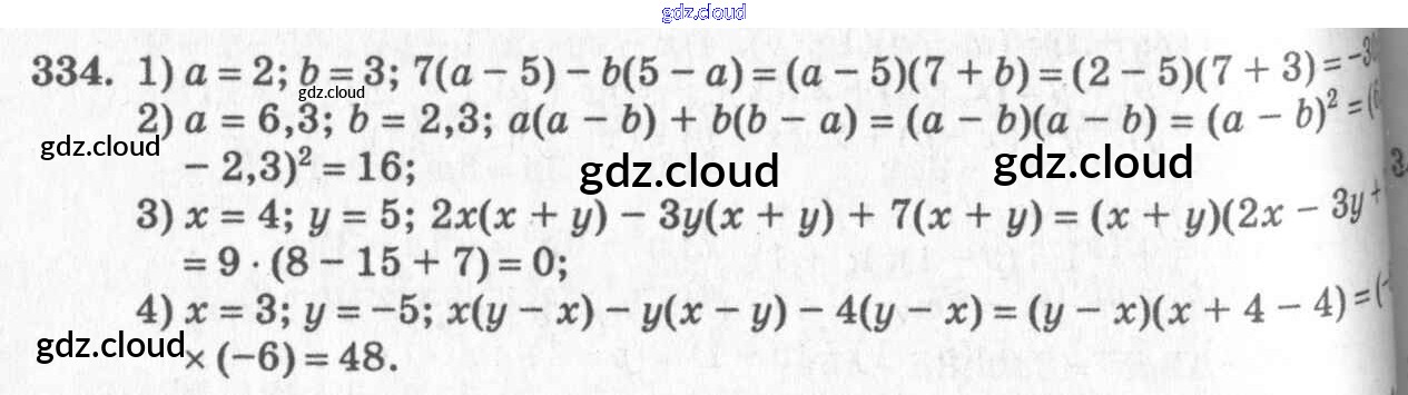 Ответ на задание 334 Учебник Алгебра за 7 (седьмой) класс Алимов, Колягин, Сидоров, Ткачева, Федорова, Шабунин 2014