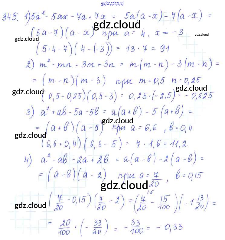 Ответ на задание 345 Учебник Алгебра  за 7 (седьмой) класс Алимов, Колягин, Сидоров, Ткачева, Федорова, Шабунин   2014