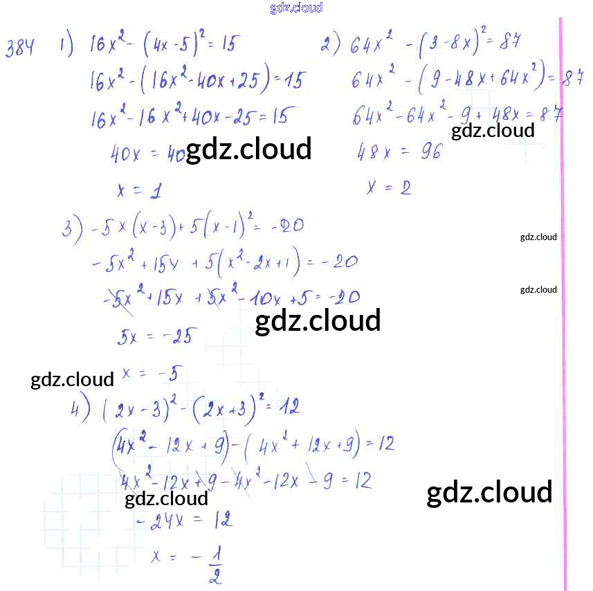 Ответ на задание 384 Учебник Алгебра  за 7 (седьмой) класс Алимов, Колягин, Сидоров, Ткачева, Федорова, Шабунин   2014