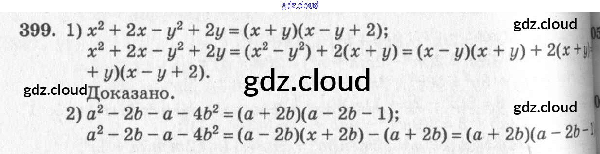 Ответ на задание 399 Учебник Алгебра за 7 (седьмой) класс Алимов, Колягин, Сидоров, Ткачева, Федорова, Шабунин 2014