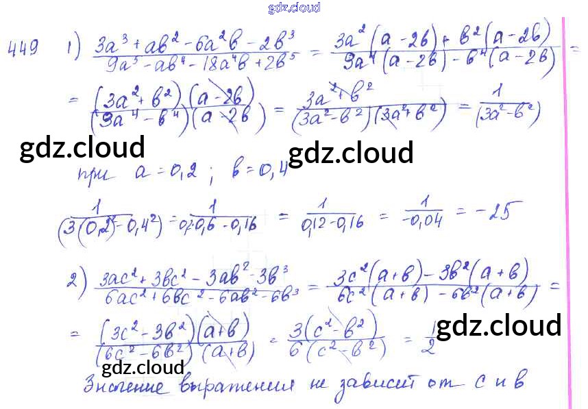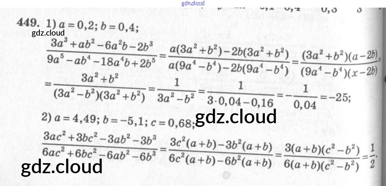Ответ на задание 449 Учебник Алгебра за 7 (седьмой) класс Алимов, Колягин, Сидоров, Ткачева, Федорова, Шабунин 2014